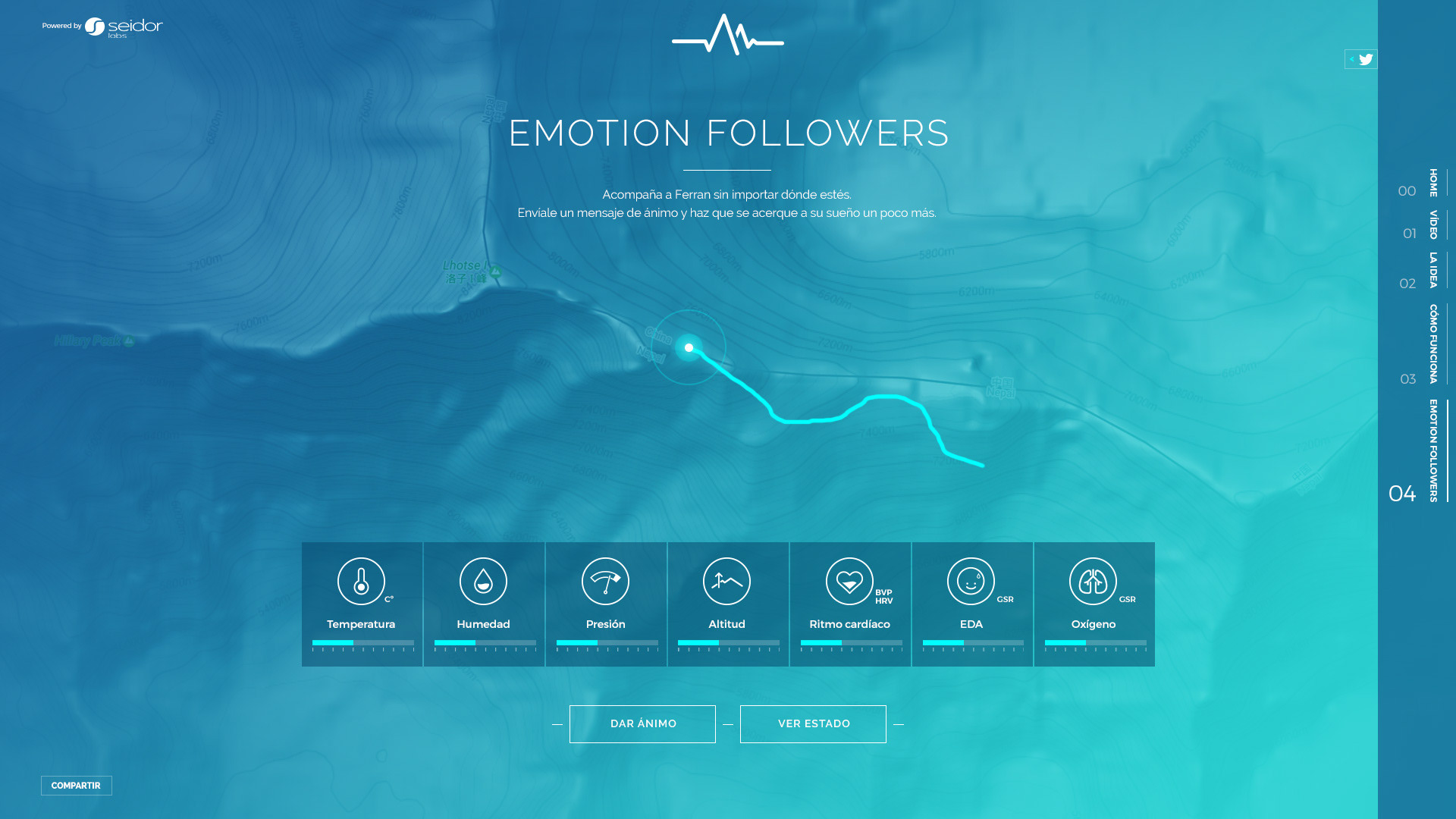 After 6 failed attempts, the mountaineer Ferran Latorre was about to make his last attempt to summit Everest. This time we wanted him to count on Emotional Pulse, a device that monitored both his vital signs and his mood in real time. Emotional Pulse allowed the choice of the moment to attack the summit to be made taking into account not only the climber's physical state, but also his emotional state. And on April 27, 2018, Ferran Latorre was able to fulfill his dream and crown Everest.